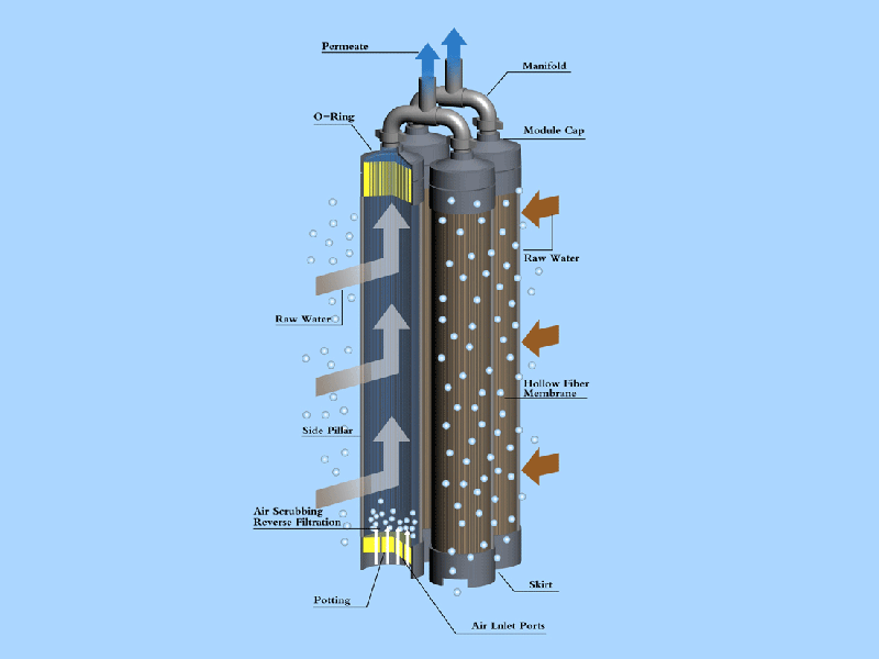 浸沒式系列產(chǎn)品采用 TIPS 法制備的 PVDF 中空纖維超濾膜,具有大通量、高強(qiáng)度,耐藥洗等特點(diǎn),全開放設(shè)計(jì),減少了污染物沉積,進(jìn)水濁度范圍更寬;組件系統(tǒng)整體浸沒于過濾水體中,曝氣集水一體化,省卻了復(fù)雜的管路及支架,使安裝維護(hù)省時(shí)省力;集成化專利技術(shù)裝備,降低了膜池占地面積,其單套處理能力在市場(chǎng)同類產(chǎn)品中最高。